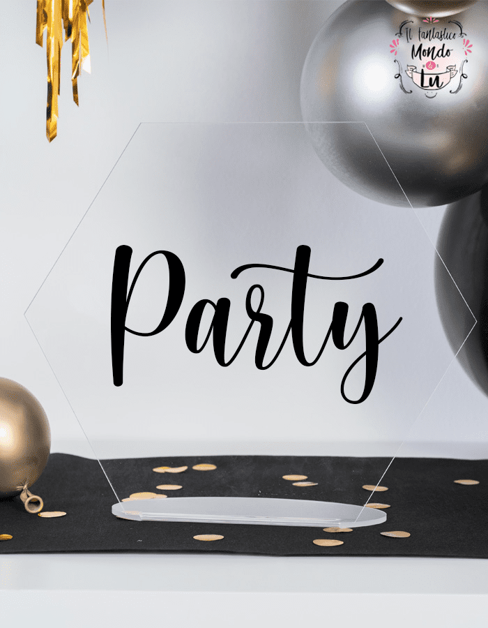 Questo esagono plexiglass personalizzato può essere usato come targa regalo con una frase di auguri a scelta, oppure come decorazione per la festa. Puoi personalizzarlo con la scritta che vuoi, il nome del festeggiato, l’età che compie, o per indicare qualcosa. Se ti piace questo materiale puoi anche acquistare un led number per dare un tocco luminoso e glam al tuo party!
