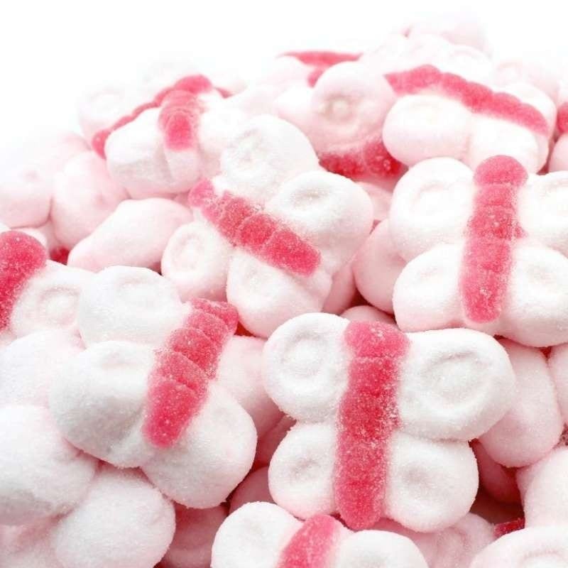 Va di moda la carammellata all’americana il cosiddetto candy bar. Per una buona riuscita di questo angolo super goloso scegli tante caramelle dai gusti e dalle forme diverse come queste marshmallow a forma di cuore rosa. Queste caramelle gommose al gusto di vaniglia sono anche molto belle da vedere, cuoricini bianchi e rosa. Un’altra forma molto carina è anche quella delle caramelle a farfalla.